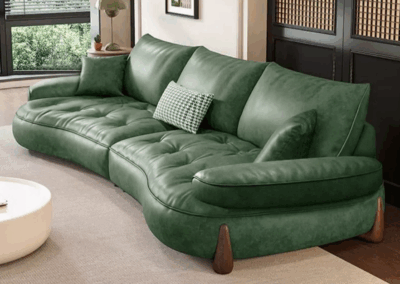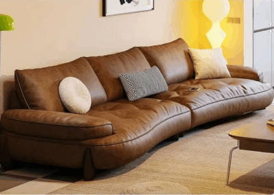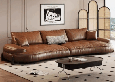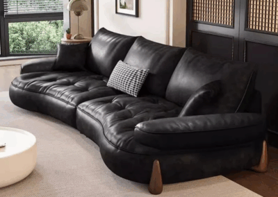 Indulge in timeless sophistication with our Elegant Wave Sofa, a masterpiece of craftsmanship and design. Handcrafted from luxurious full-grain leather, this statement piece combines unparalleled comfort with a mesmerising sculptural wave silhouette, creating a focal point that exudes artistry and opulence. A Statement of Refined Taste – Whether placed in a sunlit loft, a moody library, or a minimalist penthouse, this sofa transcends trends with its artful balance of bold form and understated luxury.