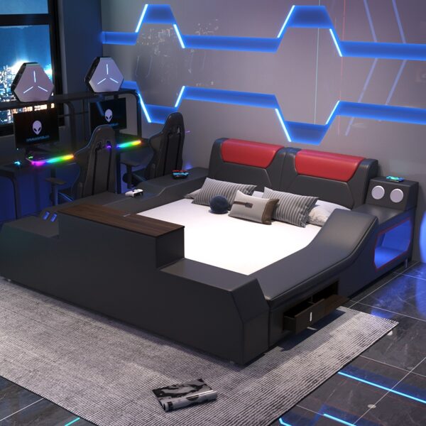 Experience the future of luxury relaxation with the Horizon TV Bed—a masterpiece of modern design and cutting-edge technology. This premium lift-up bed seamlessly integrates a 42″ Smart TV, built-in massage chair, wireless surround audio, ambient LED lighting, and hidden storage for the ultimate entertainment sanctuary. Transform your bedroom into a 5-star entertainment retreat with the Horizon Premium Lift-Up TV Bed—where innovation meets indulgence.