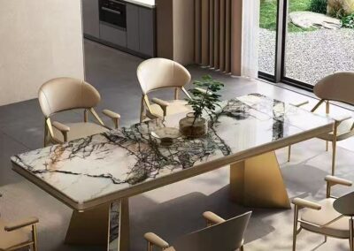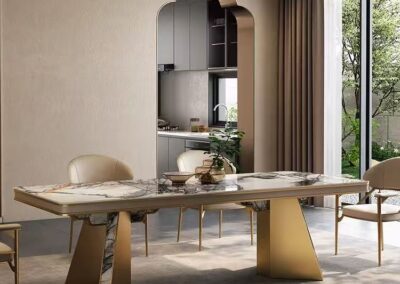 Command the room with the Paragon Dining Table, the definitive statement in high-design entertaining. This monumental 12-seater is engineered for those who demand perfection, merging the groundbreaking resilience of sintered stone with the timeless warmth of gilded metal. The expansive top, hewn from a single slab of premium sintered stone, presents a flawless, non-porous surface. Resistant to scratches, heat, stains, and UV light, it is as practical for intimate family moments as it is for grand soirées. Choose from our curated palette of marble-inspired veins, deep monolithic hues, or bespoke textures.