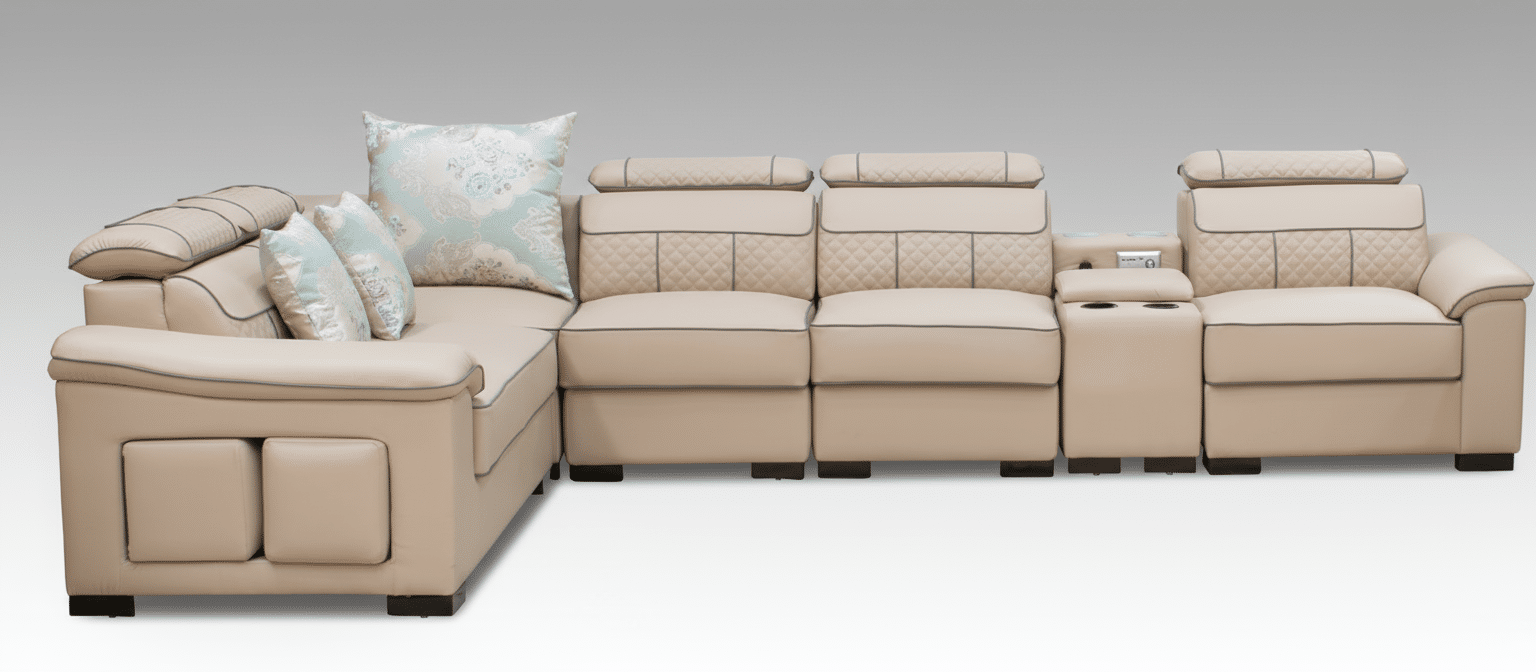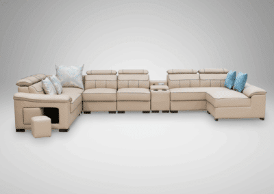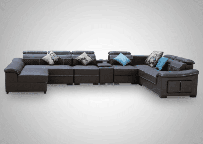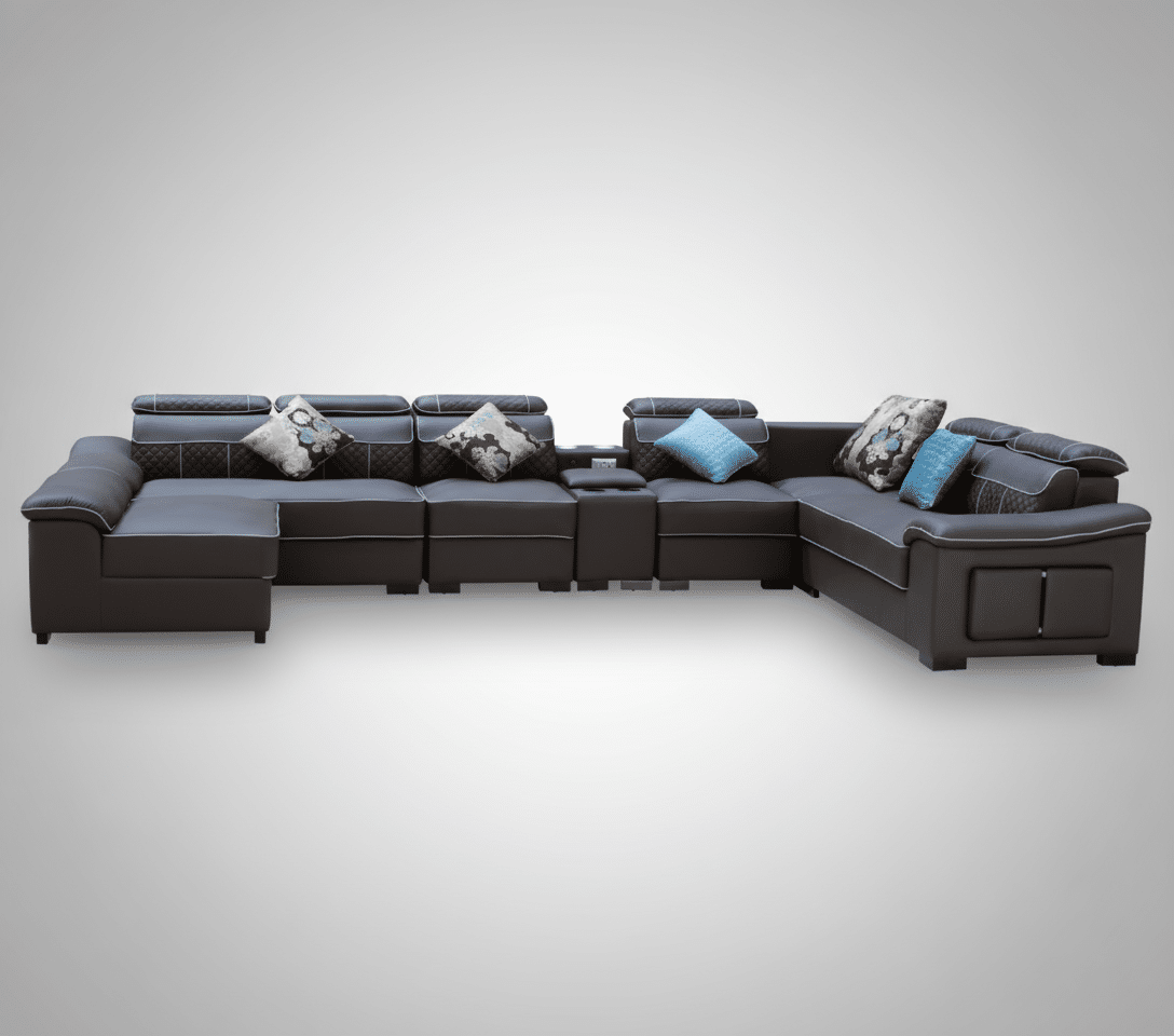 Elevate your living space with this contemporary U-shape 7-seater corner sofa, designed for both style and functionality. Crafted with premium air leather, this sofa offers a luxurious feel while being durable and easy to maintain. The spacious design comfortably seats seven, making it perfect for family gatherings or entertaining guests.